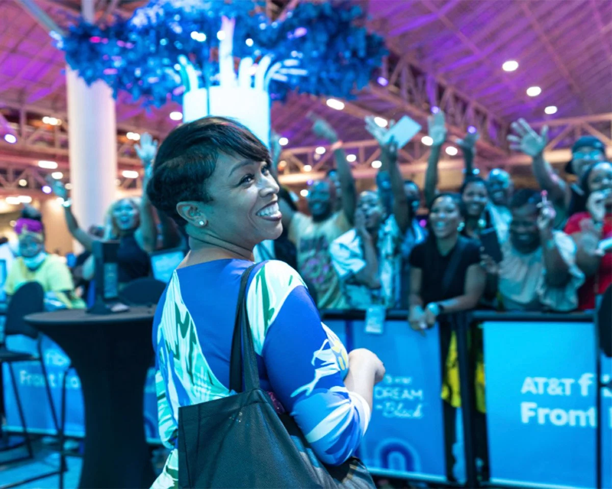 In July 2022, AT&T Dream in Black returned to the ESSENCE Festival of Culture with its boldest activation yet: Afrotropolis 3.0. Designed as a future-forward cultural hub, Afrotropolis was an immersive 70x70-foot experience housed within the Ernest N. Morial Convention Center. It was a vibrant, tech-integrated world where Black creativity, connectivity, and innovation took center stage. Here, attendees could discover the greater possibilities that exist from connecting and building their network. “Connection Changes Everything”
